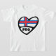 Camisa do Coração do Código do País das Ilhas Faroé. Um design cartoon legal com a bandeira e o código do país com 3 letras. Estes códigos alfa-3 são utilizados a nível mundial em domínios como comunicação, viagem e esporte. E são úteis na identificação e diferenciação de diferentes países através de códigos únicos.