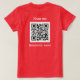 Código QR Logotipo comercial, camiseta personalizada de mulher, profissional. Vermelho, design simples. Perfeito para a sua empresa. Camiseta da mulher promocional.