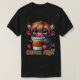 A funny and sarcastic design showcases a cute highland cow holding a to-go coffee cup brimming with coffee. With big blue eyes and a sleepy, tired expression, the cow rests its head on the cup's lid, its fluffy black fur adding to the charm. The colorful text reads, "Coffee first." This playful design is available on a wide variety of products, making perfect gifts for coffee lovers.