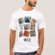 Esta camiseta legal moderna e única apresenta uma colagem de nove fotos de animais selvagens dentro uma colagem de quadros de fotografias instantâneas e a palavra "WILD" na tipografia em apuros (que pode ser alterada). As fotografias de animais foram melhoradas com um efeito aquarela e incluem: papagaio/arara, leão-do-mar, girafa, leoa, flamingo-rosa, leão, gorila, tigre-da-malaia-laranja e zebra. Este é o presente perfeito para a pessoa que ama animais, amantes de os animais selvagens, amante de os animais zoológico, amante de os animais da selva, amante de os animais de safari ou amante de os animais africano. Fotografias dos animais e design © por T.K. Vamos. Todos os direitos reservados. Pode também transferir este design para outros produtos do Zazzle clicando num dos produtos abaixo indicados.