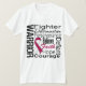 T-shirt, mercadoria & presentes da consciência do guerreiro do cancer da cabeça & do pescoço caracterizando uma colagem que descreve os atributos de um guerreiro do cancer. Os atributos do texto das características de design de um guerreiro que inclui o lutador das palavras, determinação, perseverança, acreditam, fé, esperança, desafiante e coragem. Este design é arranjado em uma Borgonha afligida legal e em uma fita branca, texto da colagem com as pias batismais misturadas do estilo que fornecem um dom original ao elemento do design.