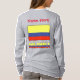 A camiseta de manga longa personalizada apresenta a bandeira colombiana com a palavra COLOMBIA abaixo, nas cores da bandeira com uma fronteira negra. Acima é um lugar para um nome, em letras vermelhas, para que você possa adicionar um toque personalizado ou criar um presente para alguém especial. Design mostra na frente e atrás da camiseta. Perfeito para sua próxima reunião de família colombiana.