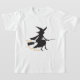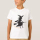 Uma silhueta de uma bruxa sobre uma vassoura com as palavras em laranja "Oh, sim, eu posso dirigir uma vara."