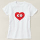 Esta camiseta apresenta um coração vermelho vibrante contendo as letras maiúsculas em negrito e arredondadas co, uma abreviação lúdica para o estado do Colorado, o estado centenário.
