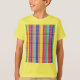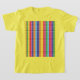 This vibrant geometric pattern t-shirt features a colorful abstract grid design that pops beautifully on a bright yellow background. Perfect for creative individuals who love eye-catching fashion and modern art-inspired apparel.