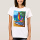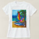 Barcos de gato hobbie coloridos em uma praia no Caribe de Lisa Lorenz em uma série de camisetas na moda.