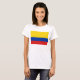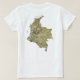 A frente desta camiseta exibe corajosamente a bandeira colombiana com suas bandas distintivas horizontais amarelas, azuis e vermelhas. Isso é combinado atrás por um mapa atraente da Colômbia.