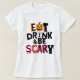 Camiseta Coma Bebida e Seja Assustador no Dia das Bruxas