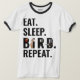 Camiseta Coma o pássaro dormindo Repita o branco e o preto