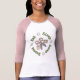Camiseta feminina mangas raglan 3/4 da Bella+Canvas, Branco/Cor-de-rosa, Adulto P