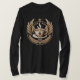 design de camiseta com a imagem de uma insígnia militar de um comandante de café, com uma xícara de café a vapor com asas de ornamentado e estrelas à sua volta.