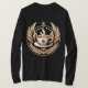 design de camiseta com a imagem de uma insígnia militar de um comandante de café, com uma xícara de café a vapor com asas de ornamentado e estrelas à sua volta.