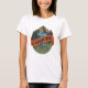 Um design de tipografia no estilo do crachá retrô legal, que diz: "A aventura do acampamento de verão começa".