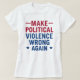 Forte declaração contra a violência política com tipografia corajosa vermelha e azul. Perfeito para pessoas que valorizam a paz, a democracia e a não-violência.