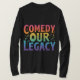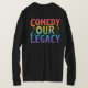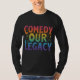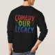 Esta t-shirt apresenta a frase "Comedy Our Legacy" num gradiente multicolorido. Cada palavra é uma forma vibrante diferente, criando um olhar divertido e enérgico.