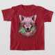 Ilustração ousada de lobo com toque surreal—pelagem rosa e vermelha, olhos desalinhados penetrantes e uma reviravolta macabra enquanto segura uma mão de zumbi. Um design vívido e simbólico perfeito para fãs de arte de fantasia sombria e mercadoria de declaração