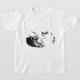 A gravura monocromática arma um felino vigilante e um canino gentil em movimento, com grãos legal de outubro. Fácil de vestir por hayrides, passeios de crepúsculo e carrinhos de pista de abóbora.