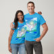 Uma t-shirt com uma ligação colorida à pomba dos pontos