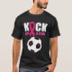 Este design apresenta uma bola de futebol com uma fita cor-de-rosa e as palavras "Kick For A Cure" para mostrar apoio à conscientização do cancer da mama.