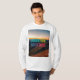 O design apresenta a frase "Conquiste suas montanhas" em uma fonte ousada e multicolorida, colocada contra um dramático pano de fundo de uma incrível e colorida paisagem montanhosa no pôr do sol. A imagem é fotografada com uma lente de grande ângulo para capturar a grandeza da cena, enfatizando a vastidão da cordilheira e a mensagem inspiradora de superar desafios.
