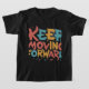 Um design de t-shirt dinâmico e inspirador que apresenta a frase "Manter em Movimento para a Frente" numa fonte ousada, em estilo de grafite. O texto é adornado com uma paleta de cores vibrantes e cercado por formas enérgicas e abstrato que captam o espírito de progresso e determinação. A design é visualmente impressionante e motivacional, perfeita para aqueles que procuram inspiração e encorajamento para superar desafios e lutar pelos seus objetivos.