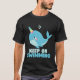 Este design divertido apresenta uma baleia feliz e fofa com a citação positiva, “Continue nadando.”