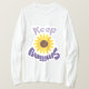 Esta design de camiseta apresenta um girassol alegre com um rosto sorridente, acompanhado pela frase elevatória "Continue sorrindo" em uma tipografia ousada e brincalhona. As pétalas amarelas brilhantes contrastam lindamente com o texto roxo, criando um olhar divertido e atraente. Este design é perfeito para espalhar positividade e alegria, fazer-o como a escolha ideal para visto casual, presentes ou peças de declaração. Fique feliz e na moda com este design vibrante e inspirador!