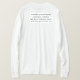" Um momento da inaptidão podia salvar uma vida. Conversa sobre o cancer Testicular!" caracterizado na parte de trás de uma camisa longa da luva do logotipo do TCS. Os rendimentos da venda desta camisa vão apoiar a sociedade contra o cancro Testicular.
