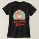 A chef de desenho retrô segurando uma espátula com sorriso assombroso e o texto "Cookin' com Atitude." Perfeito para cozinheiros corajosos que trazem estilo para a cozinha!