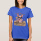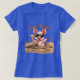 Piglet in sunglasses sitting in the mud with a cocktail and the slogan "Cool Bacon" on a blue t-shirt