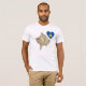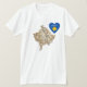 Uma bandeira kosovar dada forma coração é colocada ao lado de um mapa de alivio de Kosovo neste t-shirt distintiva patriótico.