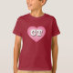 Essa camiseta tem um coração legal e calmo, cor-de-rosa, com um centro lavado em branco contendo as letras maiúsculas brancas em negrito CT, abreviação oficial do estado de Connecticut, estado constitutivo.