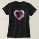 Coração cor-de-rosa com flores roxas, espirais e pontos roxos.