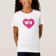 Esta t-shirt apresenta um coração cor-de-rosa quente, em forma e vibrante, contendo as letras maiúsculas, redondas, brancas, a negrito, uma versão lúdica da abreviatura de Washington, o estado verde-vivo.