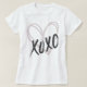 Camisa de T e O'x XOXO. Grande coração duplo com X's e O's XOXO feito em preto. Parece excelente nesta camisa colorida. Muito Amor Aqui.