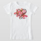 Descubra o encanto sedutor da nossa camiseta personalizada para meninas, adornada com um charmoso conjunto de coração de amor doodle contra um pano de fundo de belas flores de frangipane em água rosa. Este design atraente é perfeito para qualquer ocasião e certamente causará uma impressão duradoura.