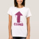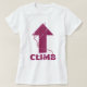 Um design de tipografia que tem a palavra subida e uma pintura de seta para cima. Corda correndo tece entre as letras da palavra escalada. Para quem ama esporte ou escalar trade.