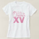 Celebre o seu dia especial com a nossa Coroa Rosa Glitter Mis Quince XV, Camiseta do Partido Quinceanera! Esta camisa de olho tem um design brilhante brilhante, perfeito para mostrar seu status real. Feito de tecido macio e confortável, é ideal para festas e encontros. Como presente de aniversário memorável, esta t-shirt serve como um guardião da vossa celebração da quinceañera, permitindo-vos apreciar a alegria e a elegância deste marco nos próximos anos!