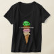 Esta camiseta humorística anuncia que seu corpo foi desenhado de forma inteligente... embora mal sustentado. Com um cone de sorvete em torre.