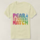 Este design poderia apresentar duas peras de desenho animado, uma ligeiramente maior ou com forma diferente para representar um casal. Eles poderiam estar de mãos dadas, com texto acima deles dizendo "Correspondência Perfeita". Isso seria ideal para casais que querem vestir camisas iguais.