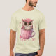 Uma t-shirt com uma imagem adorável de uma coruja sentada numa caneca de café. Corações pairando e um rosa solteiro colocado no fundo da xícara.