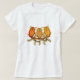Três corujas coloridas e bonitas sentadas em ramos de pinheiros