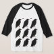 Camiseta Básica, Mangas Raglan 3/4, Branco/Preto, Adulto M