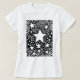 Um desenho preto e branco estilizado de um cosmos com estrelas, galáxias, planetas no fluxo maelstrom da gravidade e do continuum do tempo espacial.