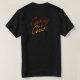 " Cozinhando na costa" -- título do livro de receitas da família de O'Keefe -- no cursive em um T. preto.