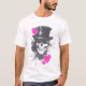 Ilustração de um crânio com o chapéu superior em preto, cinza e rosa