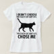 Funny cat lover design featuring a sleek cat silhouette and the quote “I didn’t choose the crazy cat lady life, the crazy cat lady life chose me.” Perfect for proud cat moms, pet owners, and anyone who loves feline humor. Great for shirts, mugs, and cozy gifts!