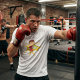 Camiseta Criança Boxer em Luvas Vermelhas e Curtos