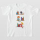 Crianças sentadas em prateleiras lendo livros. Esta design parece muito eficaz nesta Camiseta de Meninas