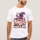 Uma design de camiseta engraçada e balbuciosa com um chapéu de mágico lúgubre com um belo coelho espiando. O chapéu está posicionado acima do texto, que diz "Criar Mágica, Inspirar Tudo" em um bubb bonito